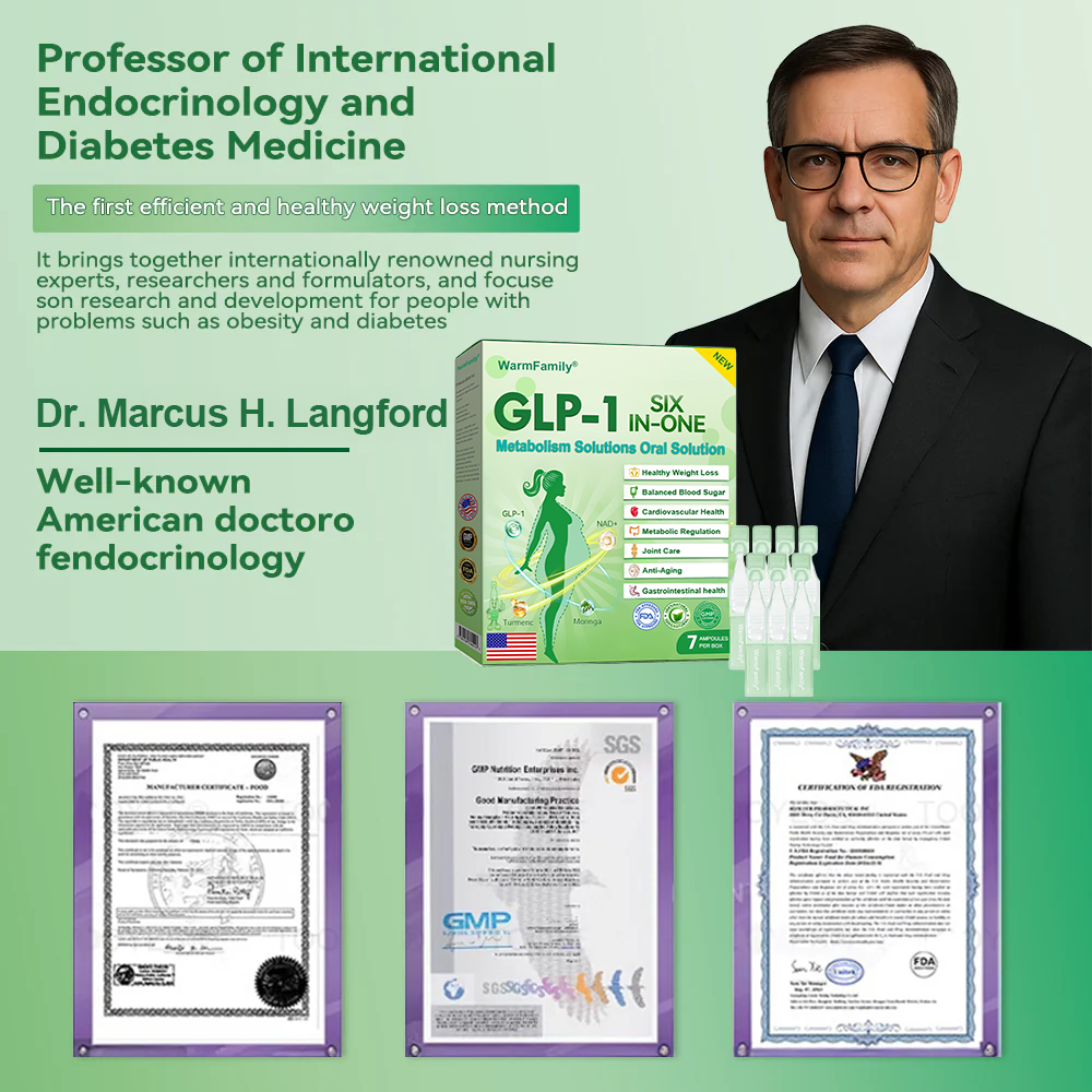 "As an endocrinologist, I am committed to finding effective and natural solutions for metabolic health and weight management. After extensive research and clinical trials with over 5,000 participants, I have found that HHVBยฎ GLP-1 Six in One Health Solution Oral Liquid offers remarkable benefits for metabolism, appetite control, and overall well-being. This formula naturally supports GLP-1 activation, helping regulate blood sugar levels, curb cravings, and enhance fat burning. Its powerful blend of apple cider vinegar, turmeric, and other natural ingredients not only aids in healthy weight loss but also promotes digestive health, boosts immunity, and supports long-term metabolic balance. With the backing of modern medical research, HHVBยฎ GLP-1 Six in One Health Solution Oral Liquidย is a trusted, science-driven choice for those seeking a natural and effective approach to weight management and overall health."